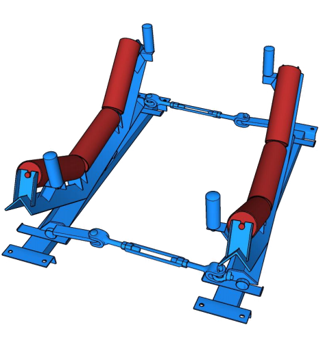 能更有效的对跑偏的输送带进行纠正调整。相对普通DTIIA型的调心托架,增加了纠偏挡棍及复位挡棍。