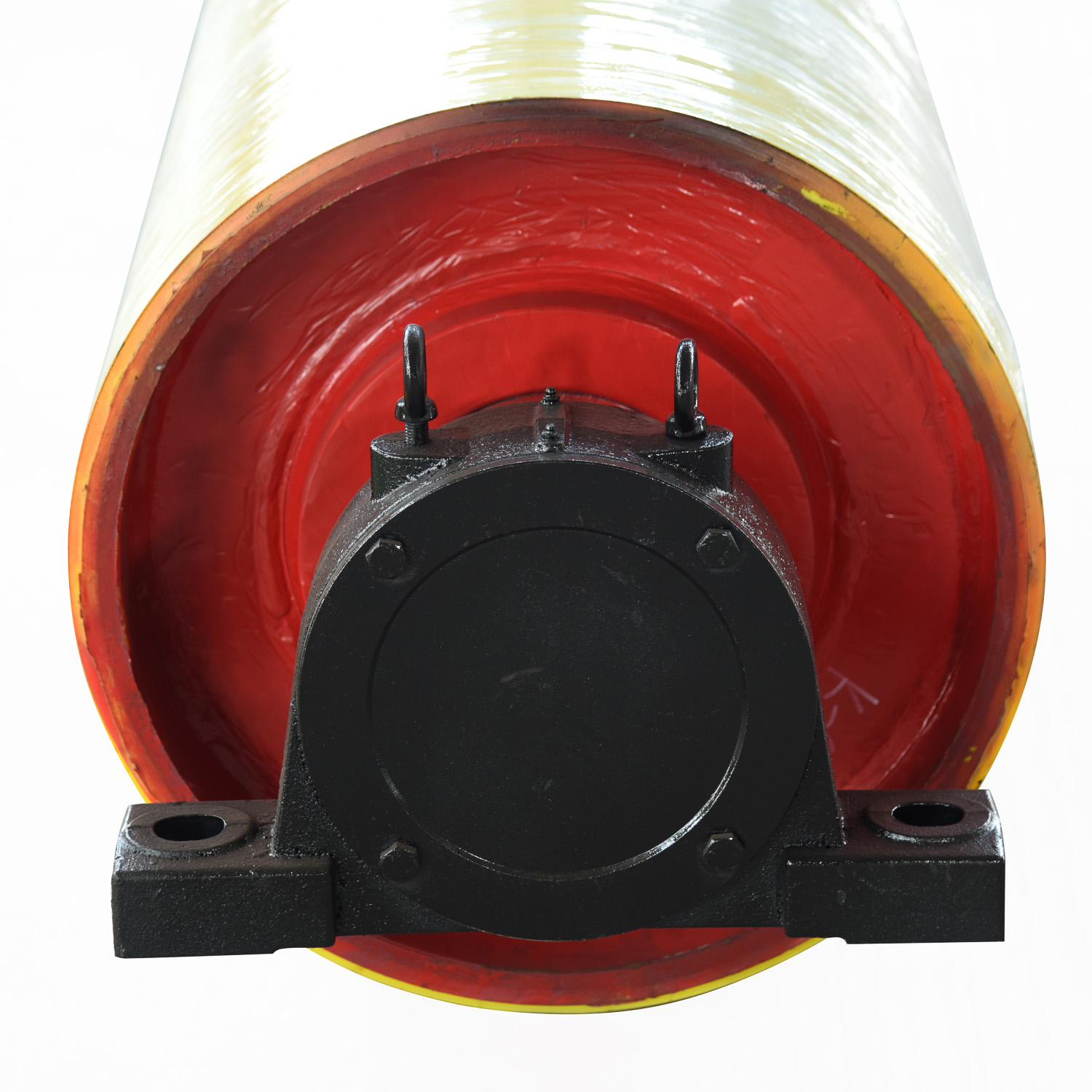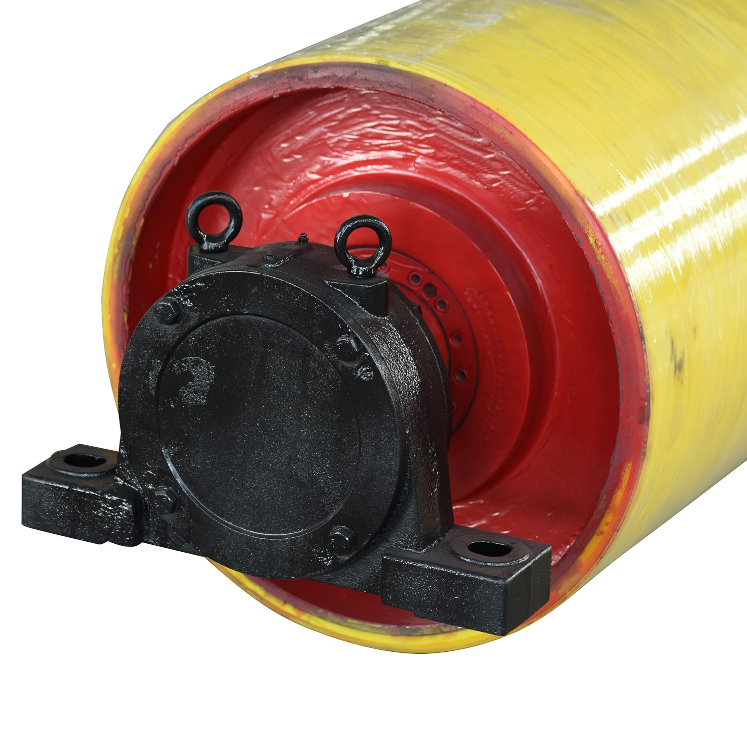 滚筒主要分传动滚筒以及改向滚筒, 传动滚筒:是传递动力的主要部件, 根据受力不同分不同的直径和轴径 由客户选择, 改向滚筒:用于改变输送带的运行 方向或增加输送带与传动滚筒间的 包角,也是根据受力不同分不同的 直径和轴径由客户选择。 为了增加滚筒的耐用性,可在滚筒 表面附助包胶层,(橡胶,聚氨酯, 陶瓷等