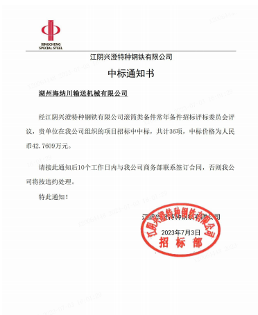 江阴兴澄托辊年标备件项目